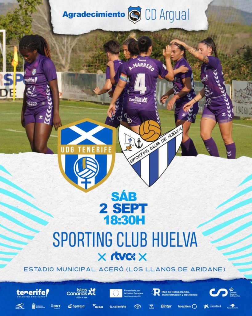Con la organización de Cabildo de La Palma, Ayuntamiento de Los Llanos de Aridane y del Club Deportivo Argual, el cuadro tinerfeño se enfrentará este sábado a las 18:30 al Sporting de Huelva, un club histórico de Liga F, que supondrá una buena piedra de toque para las tinerfeñas, ya que el conjunto onubense será el primer visitante de la isla esta temporada (Jornada 2) que comienza en una semana en la máxima categoría del fútbol femenino español.