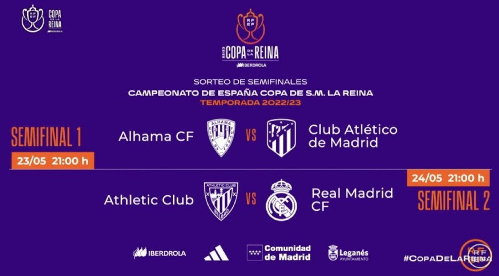 La primera semifinal enfrentará al Alhama ElPozo con el Atlético de Madrid Femenino el martes 23 de mayo a las 21:00 horario peninsular, que a priori, se podrá ver en Teledeporte. La segunda semifinal entre Real Madrid y Athletic de Bilbao se jugará un día más tarde, el miércoles 24, también a las 21:00 horario peninsular y también será producido sobre el papel por el canal temático de RTVE.
