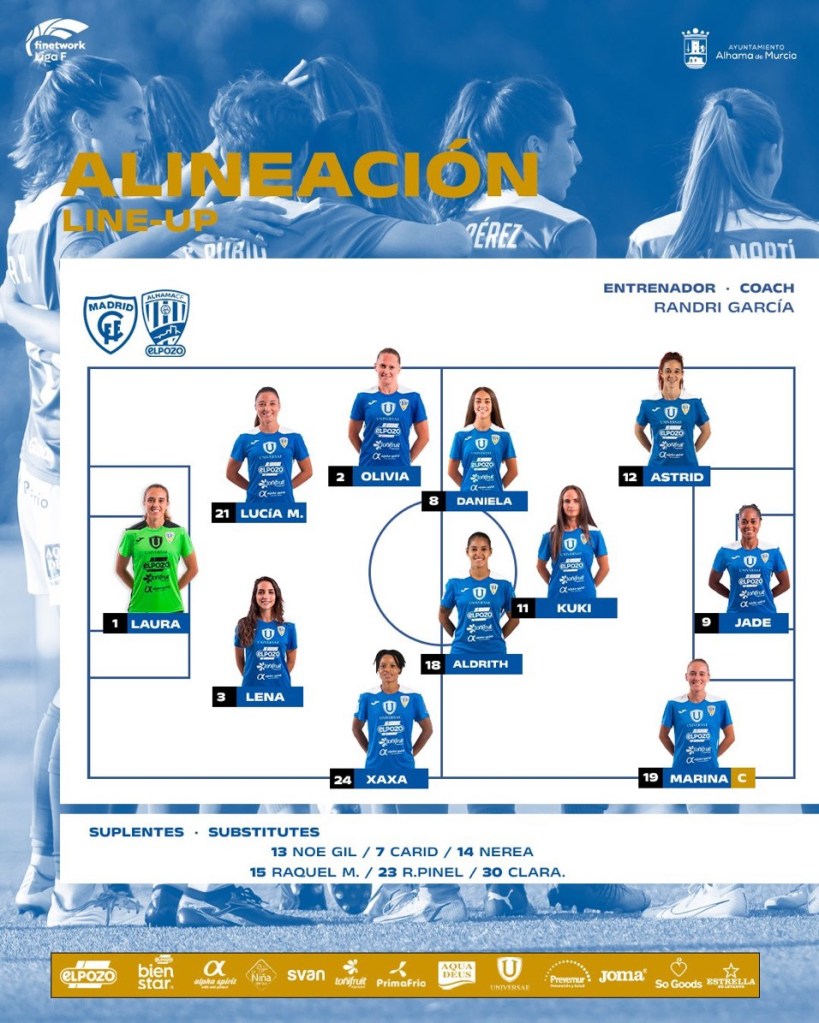 La 27ª fecha nos brinda la oportunidad de disfrutar de todo un Madrid Club de Fútbol Femenino versus Alhama Club de Fútbol ElPozo este próximo sábado, 6 de mayo de 2023, desde las 16:00 horario peninsular.