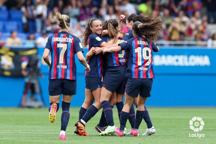 Incidencias: Partido correspondiente a la 26ª fecha de la Finetwork Liga F 2022/2023 que han jugado el Fútbol Club Barcelona Femenino y el Sporting de Huelva sobre una superficie de hierba natural.