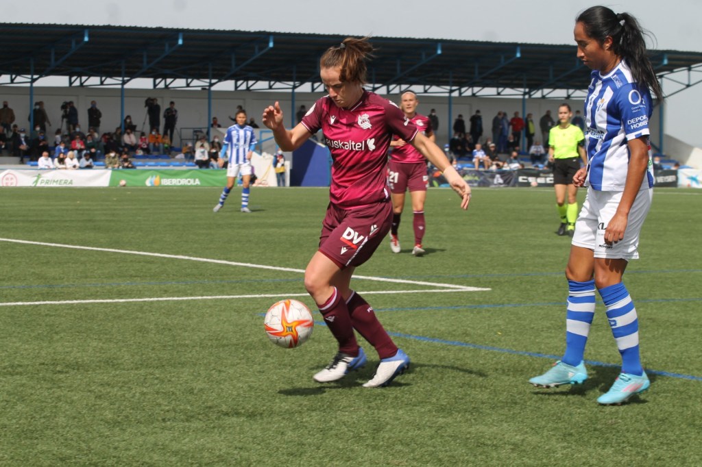 Según pasaban los minutos, las locales trataban de recomponerse en el centro del campo y frenar las abatidas de las donostiarras y lo fueron consiguiendo poco a poco sin que se produjeran ocasiones dignas de ser reseñadas.