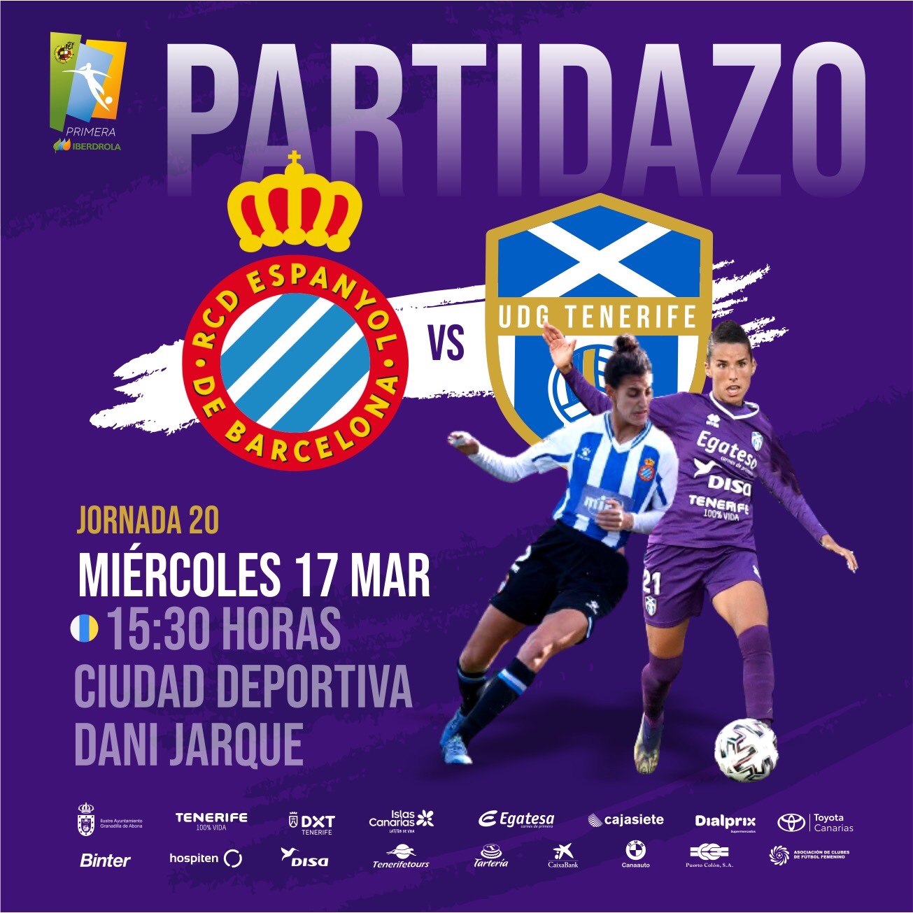 La Real Federación Española de Fútbol, ente regulador de la Primera División Femenina, ha desvelado que ha encontrado acomodo en el calendario para que el choque entre el Real Club Deportivo Espanyol de Barcelona y la Unión Deportiva Granadilla Tenerife Egatesa tenga lugar el próximo 17 de marzo de 2021 a partir de las 16:30 horario peninsular en la Ciudad Deportiva Dani Jarque.
