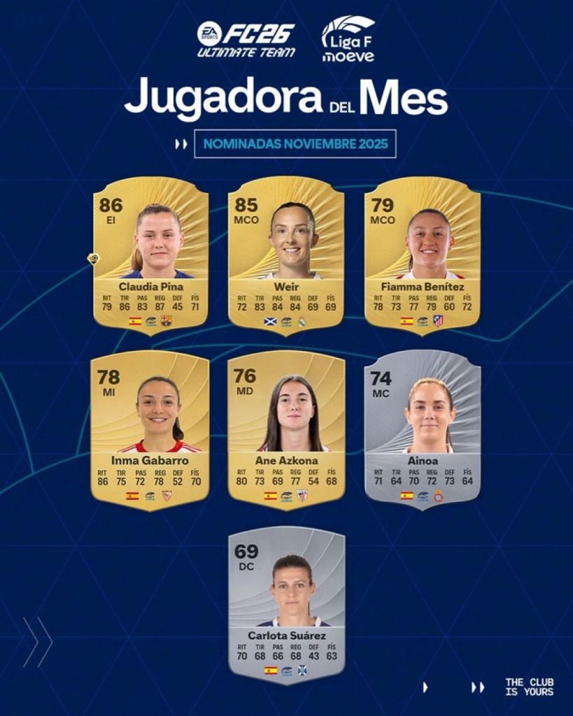 Y si este noviembre ha sido suyo, es porque la Liga F Moeve entiende que las figuras que cambian el deporte no aparecen cada día. Y porque EA SPORTS reconoce, con inteligencia y justicia, que el fútbol femenino vive una edad de oro donde Pina es faro, estandarte y vértice.