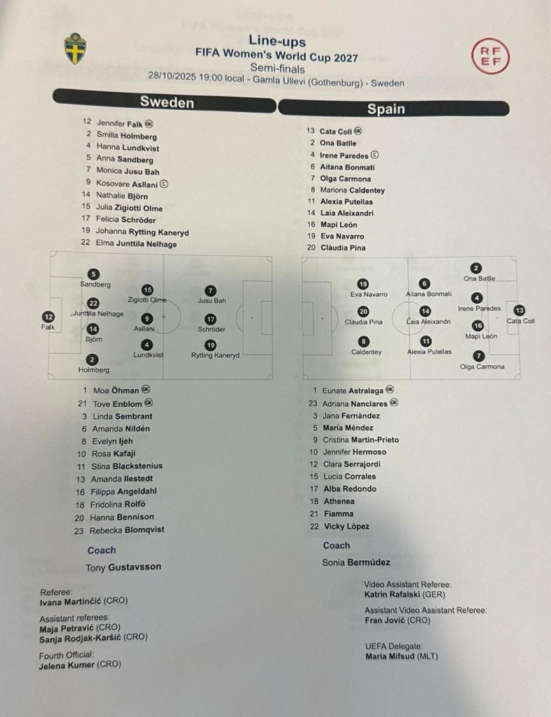 En apenas unas horas, el calendario marcaba una cita clave. A las 17:00h, la seleccionadora Sonia Bermúdez y Laia Aleixandri ofrecerán la rueda de prensa oficial previa al partido, mientras que a las 18:00h el grupo completo saltará al césped del Gamla Ullevi para realizar el entrenamiento oficial antes de la vuelta de las semifinales de la UEFA Women’s Nations League, que se disputará este martes a las 19:00h, con retransmisión en directo por La 1 y RTVE Play.