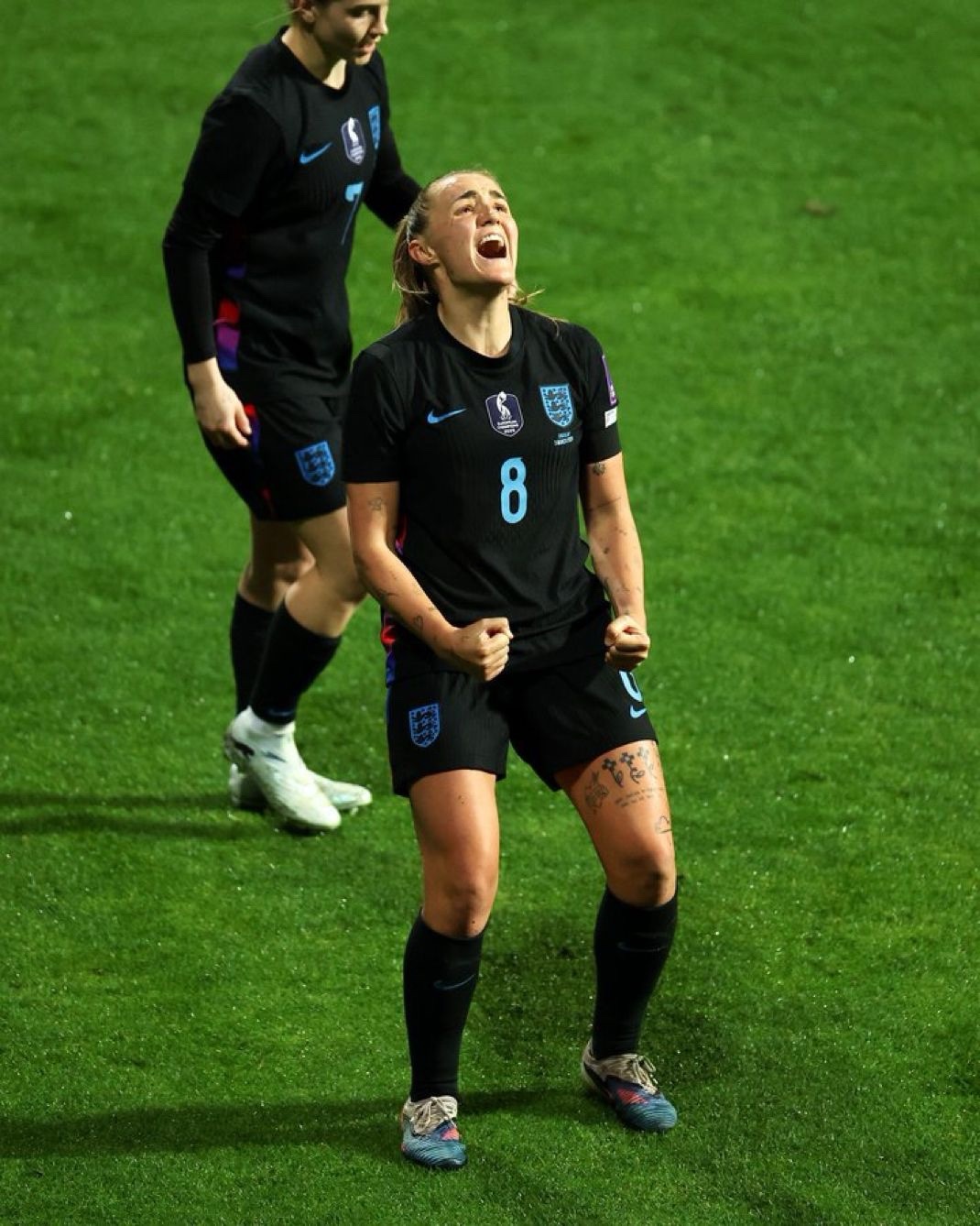 Minuto cuarenta y siete. Inglaterra acelera una combinación rápida en la frontal. El balón llega a Russo dentro del área, ligeramente escorada hacia la izquierda. La delantera controla con el pie derecho, gira sobre su marca con una maniobra elegante que deja atrás a su defensora y define cruzado con un disparo raso hacia el palo largo. El balón se desliza sobre el césped y termina besando la red lejos del alcance de Samson para abrir la lata con el 01 que rompió el partido y liberó a las campeonas de Europa de esa tensión acumulada durante toda la primera parte.